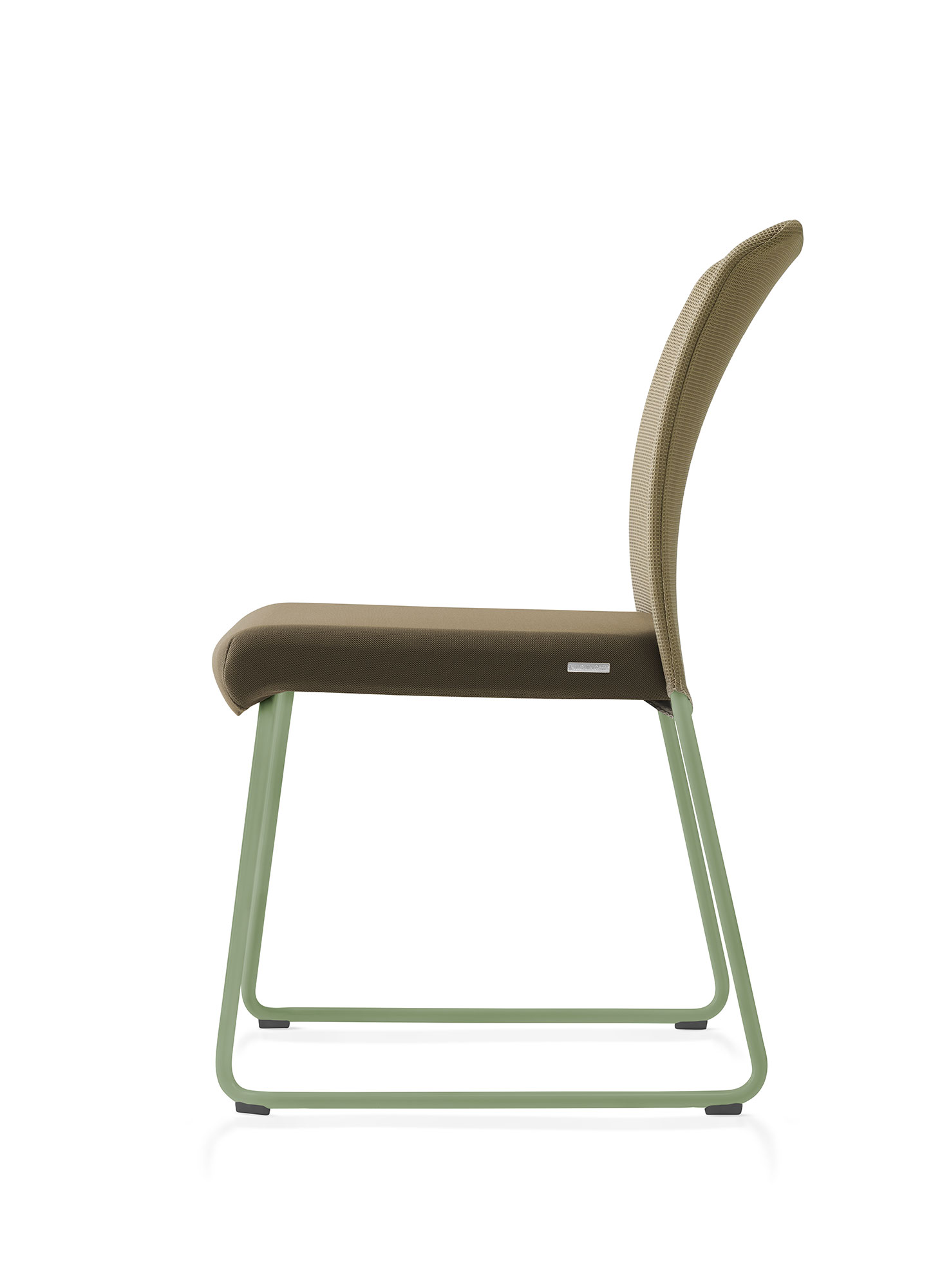 Chromed or varnished metal frame. Sled or 4 legs base available. Stackable.