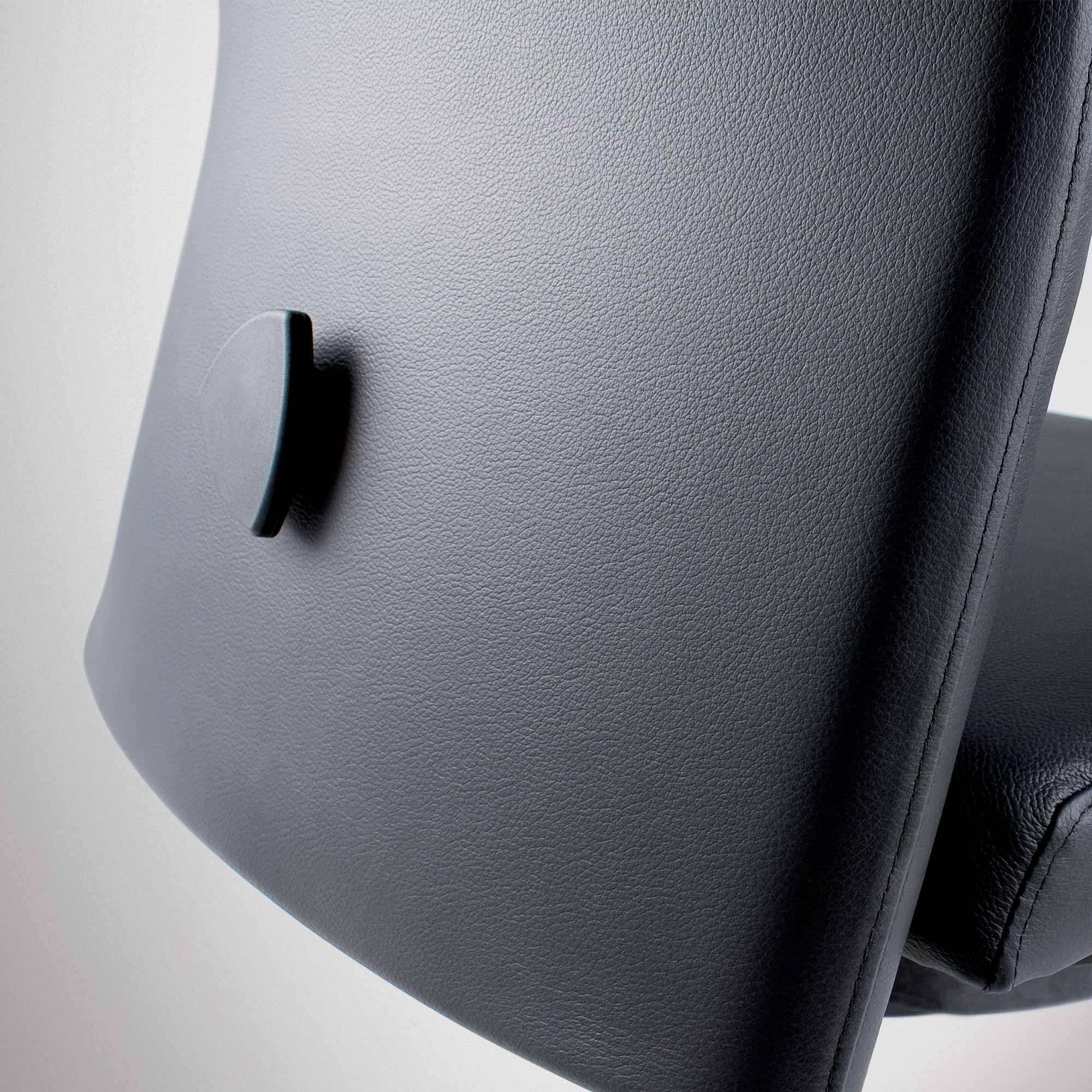 Confortable dans son assise et sobre dans son design, il mise sur la personnalisation grâce à une molette située derrière le dossier qui permet de régler la hauteur et d'adapter le soutien lombaire.