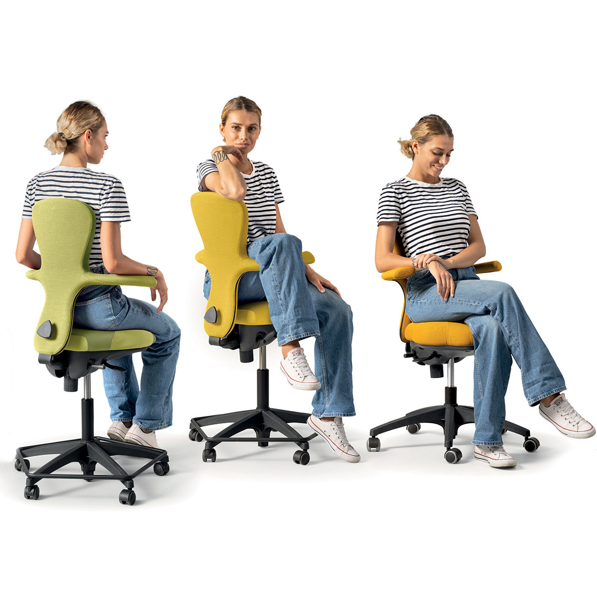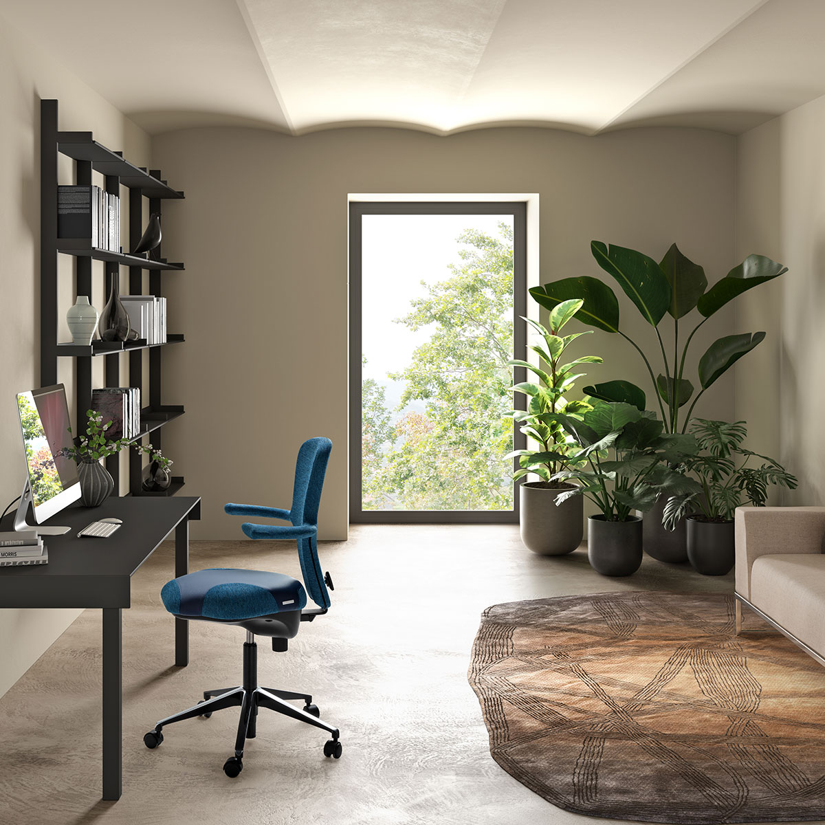 Progettata per assicurare massimo comfort durante le lunghe sessioni di lavoro seduti alla scrivania, è dotata di uno schienale regolabile in altezza, supporto lombare e un meccanismo sincronizzato che favorisce una postura dinamica e corretta.