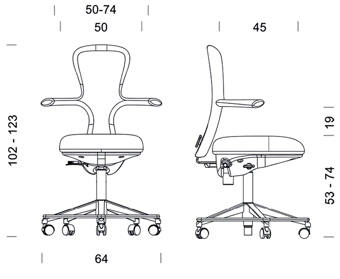 Moving73 nella versione Task Stool consente di passare dalla postura seduta a quella semi-eretta al fine di migliorare la circolazione del sangue, evitando di causare dolori alla colonna vertebrale e agli arti inferiori dovuti ad una postura statica e prolungata.