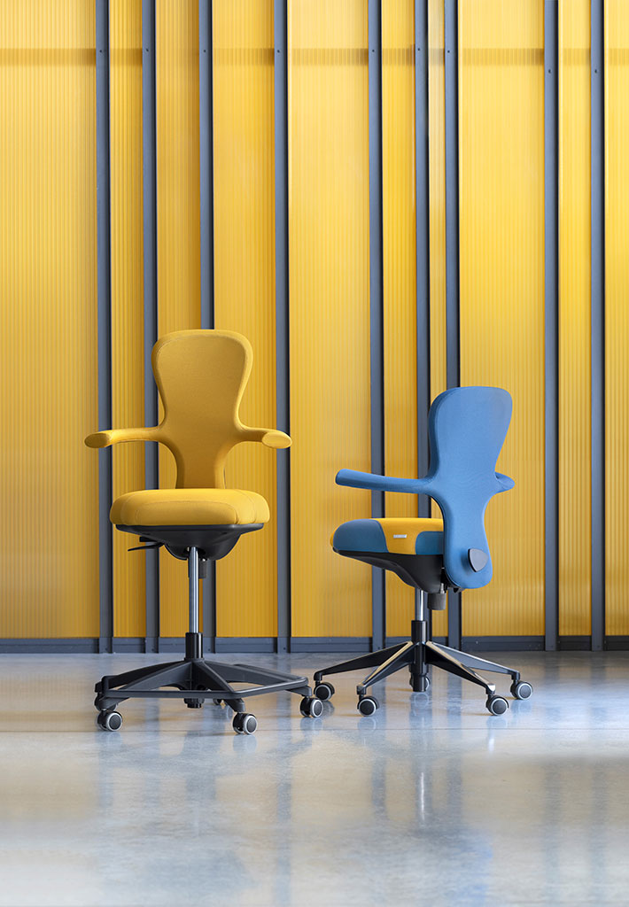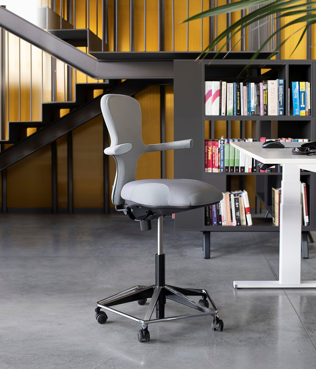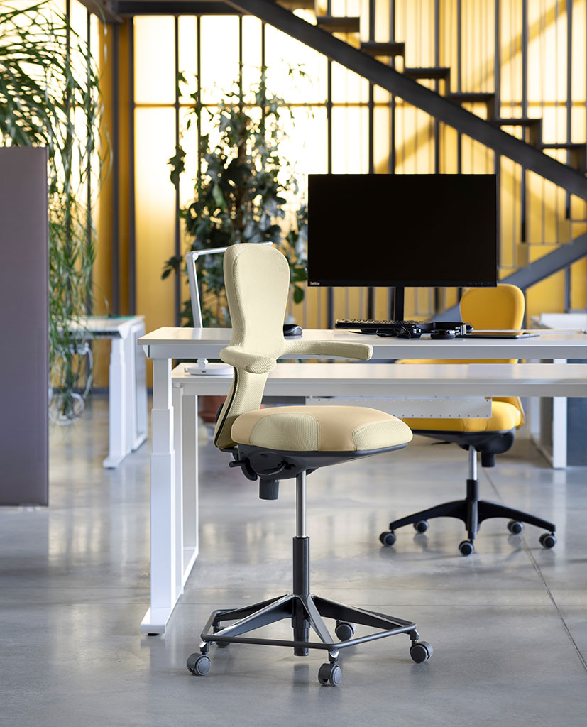 Moving73, brevetto di casa Moving, è una seduta tecnica innovativa progettata per rispondere alle esigenze di regolazione in altezza delle scrivanie.